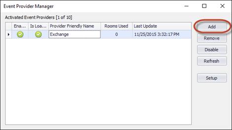 3. Click the Add button to add a new event provider instance.