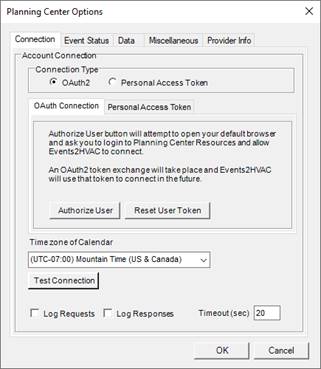 OAuth2 - Connects using OAUTH2 token exchange to a user account in Planning Center.