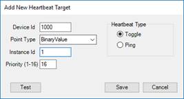 If you can’t discover the local E2H-S point for failover control, you can optionally define heartbeat target points for E2H to push heartbeat commands to. Typically, if you are using the BV-1 status point for monitoring, you won’t need to send heartbeats.