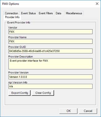 The Provider Info tab is an informational only display that shows specific details about the event provider.