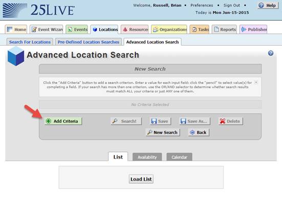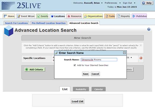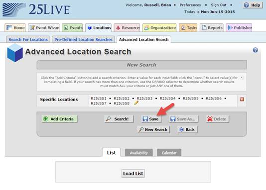 This concludes the setup of the search in CollegeNet 25Live. Next step is to discover it in Events2HVAC.