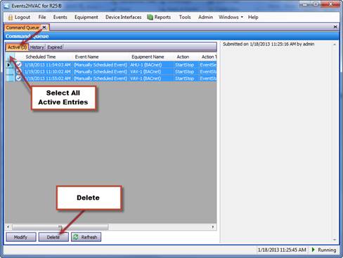 Open the client and verify that your active command queue is filled with current active commands. Also, do a quick check to see if you are getting events from your event provider by opening up the event calendar.